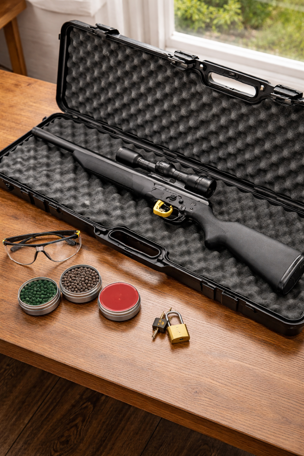 Transport your airgun in a case, not loose in the vehicle. A proper case protects the airgun and signals responsible handling. A lockable hard case is ideal, but a zippered soft case plus a small luggage lock is also a meaningful improvement over carrying it uncovered.