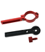 It has a knurled screw that screws into the bottle and releases the air. Once the tank is empty, attach the red bottle clamp onto the bottle and use the custom wrench to slowly unscrew and release any remaining air.