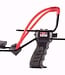 Concentration is the name of the game! Learn how to instinctively aim and shoot a slingshot with the laser assisted Umarex X Shot LE slingshot. This slingshot not only features a laser aiming aid, but it also has a unique ammo pocket that centers and holds your marble or steel shot ammo for a sure, accurate shot. This slingshot also features a wrist brace to help you hold and maintain a full draw for your shot! Additionally, the grip body holds several rounds of your favorite round ammo and will release a shot into your hand with a press of a button. This slingshot uses (3) LR44 alkaline batteries (included) to power the laser.